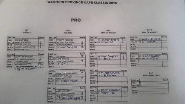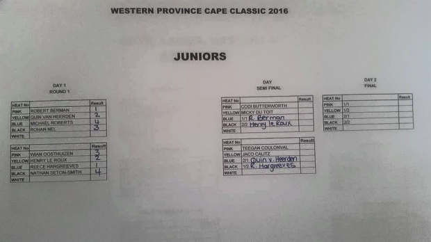 Day 1 heat results from the 2016 Cape Classic