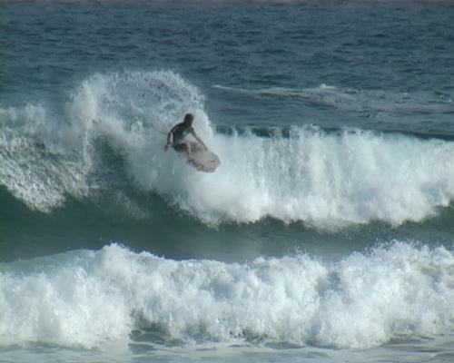 Today, the conditions were a little smaller than yesterday, with the traditional "glassy for the first hour and then onshore" thing happening for the second day in a row. Conditions were 3 to 5 feet and the waves, although mushy, were still contestable.