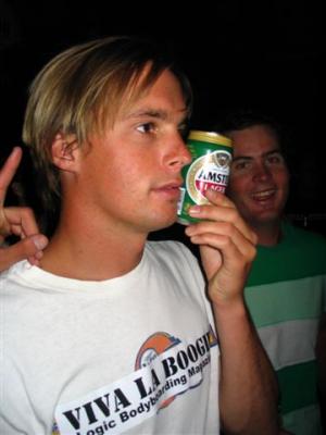 By 21:30, the downstairs venue was capacity packed and the party was on as invited guests, celebrity riders, band members and curious bystanders mingled and toasted two years of bodyboarding in print. A few minutes after ten, the upstairs area was also near-packed as Durban band Sitter took to the stage and proceeded to rock out in fine style, delivering a stunning set of tunes and getting the crowd roused up before the next local act - The Shy Guevaras. Now these dudes present hard rock with a delicate edge and lead singer Gareth commands a formidable stage presence, leaving little doubt in anyone's mind that this is THE band to watch out for in 2006. Leaving the stage after a 40-minute extended set (these guys love performing!) meant it was time for a quick refill at the bar before heading back to the dancefloor for headline act LPShow. Lead singer Galen (a pro surfer himself) let rip from the first chord and really got the place jumping to all the old LPShow favourites and the band kindly treated us to some new material that hinted at a forthcoming album. They bowed out amid shouts for �one more song!� and it was up to the DJ (Jon Monsoon) to turn up the heat and bring the boogie. All in all - a wicked evening and a fine testament to bodyboarding with two years' worth of Logic Magazine at the helm, giving a voice and a face to the amped art of bodyboarding! Here's to the next two and beyond! VIVA LA BOOGIE!