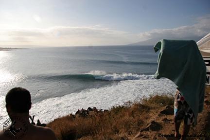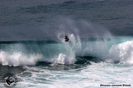 Round Three started as slowly as Round Two ended, unfortunately with the lower tide sucking out, waves became a little scarce and with the exception of Australian John Showell's 9.5 wave, heat #1 saw very little action. Heat Two began with the set of the afternoon pouring in with David Hubbard being the benefactor. Dub took off on a solid seven-footer and pulled into a draining right-hander that went for a while, he then came out and hit a large section coming straight at him which gave him a perfect 10 out of 10, the first of the event.