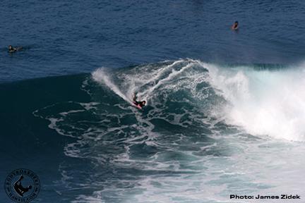 By the start of Round 1 at 10am, the waves were already pushing six feet and riders were pushing limits from the outset. The first standout wave of the day came in Heat #2 as Jason Pembrook pulling into a clean, hollow, six-foot wave on the outside, exiting cleanly a few seconds later, scoring him a 7.0 out of 10. Moments later, the rising swell made its presence known to an empty lineup as waves over seven feet came screaming across the Bay. The highest scoring wave of Round One came from Kauai's Tim Hamilton, a long, deep backdoor tube that earned him an 8.0. Round 1 standouts that advanced were Michael Novy, Shea Sevilla and Kainoa Lum.