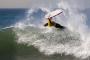 After catching only three waves, Jordy Smith of South Africa took first over Sebastian Santos from Ecuador, the 2002 Junior World Champ with a combined score of 14.17. Smith posted an 8.17 on his third wave when he disappeared into a left-handed barrel and broke through the whitewash to cheers from the beach.
