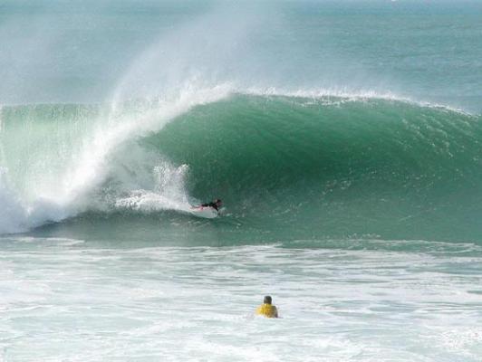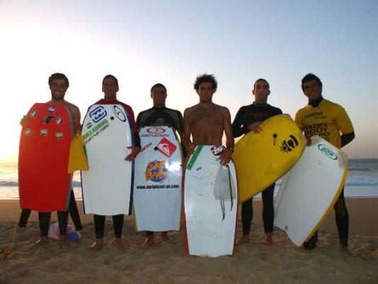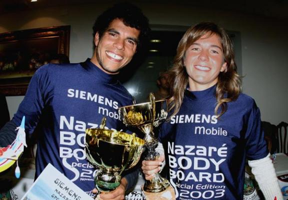 New stars where born, 6 of November will definitely be remembered in the scenario of Bodyboarding in Portugal. 12 athletes competed in the waves as big as 3-4 meters at North Nazare. It was the first edition of Siemens Mobile Bodyboard Special Edition 2003. Paulo Costa was the big winner. We had a great dinner presentation celebration at the Adega Oceano, a location that is situated in the village of Nazare. Paulo Costa won the event with a great wave, a big barrel finishing with a clean air 360. In second with a close margin of points was Rui Ferreira, one of his waves stood out the most with one of the cleanness barrels of the event. In third place was Luis "Bajolo" Duarte and in fourth was Gonsalo "Estrela" Silva. 5th place was Luis "Porquito" Perreira and in 6th Nuno "Martelo" Simoes. Nuno "Martelo" Simoes received a award for the best wave of the event, it scored a perfect 10. Ricardo Faustino receive an award for the best wipe out of the entire event and Rita Pires won the Women's Division that was held at another spot called Praia da vila.