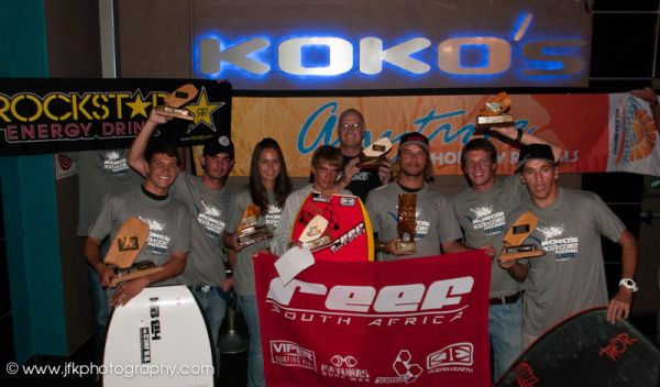 Southern KwaZulu Natal and SABA would like to thank all the sponsors, competitors, spectators and organizers who made this event possible. The sponsors were Koko's Club and Grill (Margate), South Coast Tourism, Reef Wetsuits, Anytime Holidays, Wavehouse Gateway, JFK Photography, Surf M'Ocean, Panarottis, Nu Form Scaffolding, Rockstar Energy Drinks,Criss Cross Security, Pavillion Restaurant (Uvongo) and Aldabra