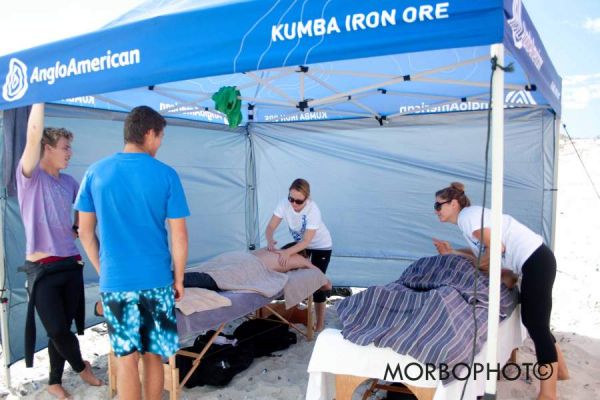 Day 1 of the Kumba West Coast Classic 2012 kicked off with solid 3-4 foot swell at "Bones" which grew into 6 foot and then later solid 8 foot sets sometimes creating havoc in some of the heats. It's was a real pretty sight to see the big ones roll in and a real treat to listen to the crowd's response. Some of the riders were knocked hard by the big waves causing some serious bruising. Some big ramps were seen and some of the riders got tucked away deep in the barrel. The predicted cross-shore wind managed to stays away and hopefully will for day 2 as well.